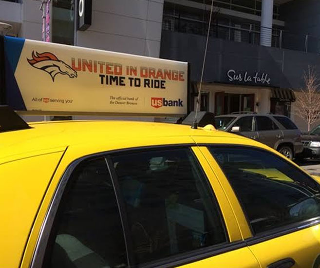 Taxi top advertising displays penetrate through the clutter with the taxi signs visible to various demographics. With bold and colorful taxi ads set against a yellow surrounding, taxi cab advertising grabs people's attention.